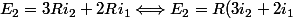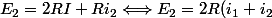 + Ri_2 \Longleftrightarrow E_2 = 2Ri_1 +2R i_2 + Ri_2 \Longleftrightarrow E_2 = 2Ri_1 +3R i_2)