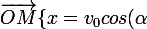 t \\y=-\frac{1}{2} gt^2+v_0sin(\alpha)t\\z=0})
