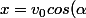 t \Longleftrightarrow t=\frac{x}{v_0cos(\alpha)})