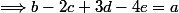 -a+b-2c+3d-4e=0