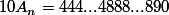 An = 4 * (10^n - 1)/9 * 10^n + 8 * (10^(n-1) - 1)/9 * 10 + 9