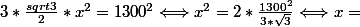 (3X(racine carré de 3)X x²)/2 = 1300²