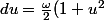 \,=\int_?^{\tan(wx/2)}\frac{1}{1+k\frac{1-u^2}{1+u^2}}\times\frac{du}{\frac{\omega}{2}(1+u^2)}\,<br />=\,\frac{2}{\omega}\int_?^{\tan(wx/2)}\frac{du}{1+u^2+k(1-u^2)}\,<br />=\,\frac{2}{\omega(1+k)}\int_?^{\tan(wx/2)}\frac{du}{1+\frac{1-k}{1+k}u^2})