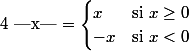 [TEX]4$ |x| = \begin{cases} x & {\rm si}\ x\ge 0 \\ -x & {\rm si}\ x 0