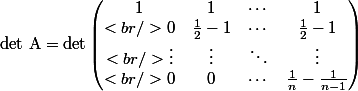 il semble facile d'écrire la matrice ... et de développer ce det suivant les lignes ... et de faire une récurrence ....