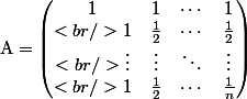 1) Détail de la matrice. Elle est symétrique, de cette forme :