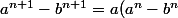 a^n-b^n = (a-b)(a^{n-1}+ba^{n-2}+b^2a^{n-3}+...+b^{n-2}a+b^{n-1})