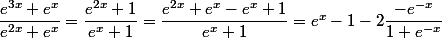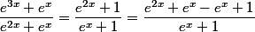 Je pense que cette intégrale est de la forme u'(x) / u(x) , mais je n'arrive pas à trouver un facteur pour que ( e^3x + e^x) soit égale a 2e^2x + e^x.