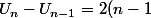 + (U_{n-1} - U_{n-2}) + ... + (U_2 - U_1) + (U_1 - U_0) \\<br />= \(2(n-1) + 3\) + \(2(n-2) + 3\) + ... +\(2 + 3 \) + (3))