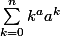 J'ai un problème pour le calcul d'une somme : c'est sigma pour k allant de 0 à n de (k^a X a^k) où le X est le signe multiplié et a est une constante.