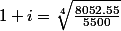 J'ai de la difficulté avec une équation en finance. Je doit trouver l'intérêt a partir de cet équation : 8052,55 = 5500(1+i)^4. Je ne sais pas trop comment ¨enlever¨ l'exposant.