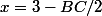 car plus BC est petit et plus X augmente en valeurs c'est ce que dis cette formule x=3-BC/2