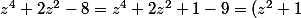 ^2 - 3^2 = (z^2 + 4)(z^2 - 2) = (z^2 - 4i^2)(z^2 - \sqrt 2 ^2) = (z - 2i)(z + 2i)(z - \sqrt 2)(z + \sqrt 2))