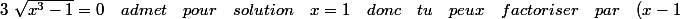 makak06 a écrit:La limite de x-1 quand x-> 1 est egal a 0 mais sa me donne donc lim de 0/0 et je crois que c'est une limite indeterminé ou du moin je dois pouvoir simplifier plus haut mais comment svp ?