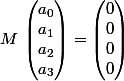 On te donne un système linéaire homogène de quatre équations à quatre inconnue. Sous forme matricielle,