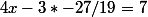 Il faut isoler x. Tu as 4x = 52/19. Donc pour isoler x, il faut diviser les 2 membres de cette égalité par quoi ? Ce qui revient à multiplier par son inverse.