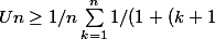 Un <= somme 1/(n+k) = 1/n * somme 1/(1 + k/n) et ce truc là converge (somme de Riemann)