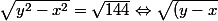 (y+x)} = 12 \Leftrightarrow \sqrt{y-x} \times \sqrt{y+x} = 12)