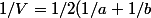 En développant l'expression tu obtiens 1/2a+1/2b donc 1/V=(2b+2a)/4ab , V est donc égale a 4ab/(2b+2a)