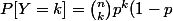 croco4 a écrit:(II)Sauf erreur de ma part, comme je répète le procédé n fois, cela revient à utiliser une loi binomiale de paramètre (n,p) et la probabilité que ma somme, appelons la Y, soit égale à un naturel k se traduit comme: