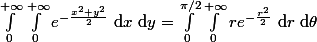 ^2 <br />= \left( \int_0^{+\infty} e^{- \frac{x^2}{2}}\ {\rm d} x \right) \left( \int_0^{+\infty} e^{- \frac{y^2}{2}}\ {\rm d} y \right))