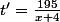 Temps_Cycliste2 = 195 / (x + 4) - 1
