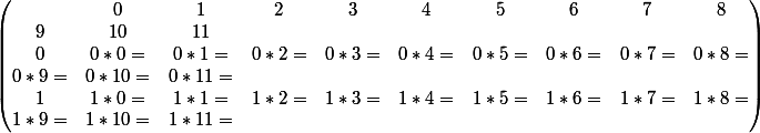 Table de multiplication :