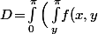 Fais un dessin de ton triangle D et tu dois voir que "si tu balayes D pour x allant de 0 à