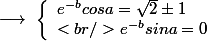 \\ e^{-b}sina = 0 \end{array} \right[/tex]