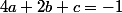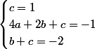 J'obtient c=1 et 4a+2b=-2 mais je ne vois pas comment poursuivre