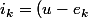 avonssur ce circuit 3 tension R, un générateur idéal de tension de fem e, une résistance, Ru un interrupteur ouvert K et un générateur idéal de courant de cem heta.
