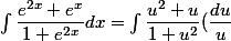 '}{1+e^{2x}}dx+\int\dfrac{(e^x)'}{1+(e^{x})^2}dx=\dfrac{1}{2}\int\left(ln(1+e^{2x})\right)'dx+\int\left(atan(e^{x})\right)'dx)