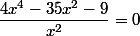 je me permet de demander votre aide car je cherche à résoudre l’équation 4x^2-35-9/x^2 =0.