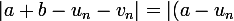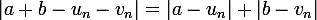 et donc a+b = 2 ... or pour toi u+v = 1 et donc pas conforme à l'exigence de l'énoncé : "... et telle que u + v converge vers a + b"