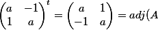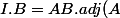 La matrice inverse de A, A^(-1) = à la matrice adjointe adj (A) divisée par le déterminant de la matrice A.