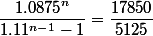 1,0875^n(5125)-1,11^(n-1)x17850+17850=0