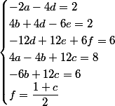 j'ai ces 6 equations la avec 6 inconnus à resoudre (je dois trouver a b c d e et f)