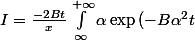}\sin{(\alpha x)}}d\alpha = <br />\frac{-2Bt}{x^2}[-\alpha exp(-B\alpha^2 t)\cos(\alpha x)] + <br />\frac{-2Bt}{x^2}\int_{\infty}^{+\infty}<br />[(-Bt\alpha^2)\exp{(-B\alpha^2 t)}+\exp{(-B\alpha^2 t)}]\cos{(\alpha x)}}d\alpha)
