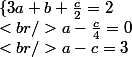 Déterminer trois réels a, b et c tels que la courbe d'équation y= ax + b + c/(x-1) passe par A (3 ; 2), admette en ce point une tangente horizontale et possède au point d'absisse 2 une tangente parallèle à la droite d'équation y=3x+2.