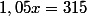Le prix avant augmentation était de 300. Après augmentation, le prix est de 315