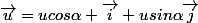 \vec{i}+R sin(\pi/2-\alpha) \vec{j}=R sin\alpha \vec{i}+R cos\alpha \vec{j})