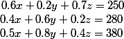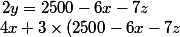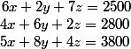 = 2800 \\ 5x + 4 \times (2500 - 6x - 7z) = 3800)