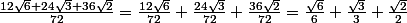 si tu veux tout sous le même dénominateur, il faut factoriser et simplifierd'emblée(12V6+24V3+36V2)/72=12(V6+2V3+3V2)/72=(V6+2V3+3V2)/6