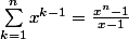 int(sn(x),x)=sum((k-1)x^(k-1),k=1..n)