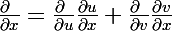 df/dx(x,y)=dg/du (u,v)+dh/dx (x,y)*dg/dv (u,v)
