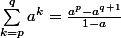 Le premier qui y est moins le premier qui y est pas sur un moins la raison.Le "y" fait bien sûr référence à la suite. Ici, le premier qui y est est a^p, le premier à ne pas y être est a^(q+1) et la raison est bien sûr a.