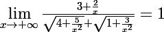 Je touve que ;)(4+(5/x²))+;)(1+(3/x²) tend vers 0 en +00 donc au denominateur il tend vers +00 docn la fonction tend vers +00 c'est ca ?