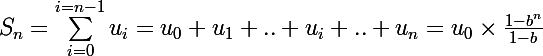 rappel:la somme des n 1ers termes d'une suite géométrique (u_n) de raison b (b#1) et de 1er terme uo est: