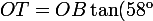 =\frac{OT}{OB}\text{ et }\tan(23^{\text{o}})=\frac{OT}{OA})