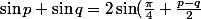 Pourrai tu m'expliquer pour sinp + sinq d'où vient le pi/4 et qu'est ce qui joue le rôle de p et q stp?